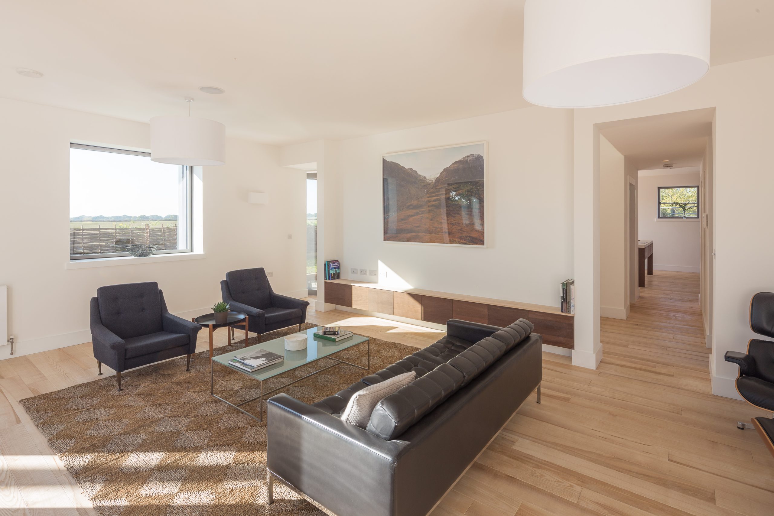 Clad in black timber, with modern interiors, the design takes inspiration from traditional Berkshire barns while offering a strong external appearance; an intentional statement. Inside, generous west-facing windows frame sweeping countryside views and flood the home with light, creating a warm and joyful interior.